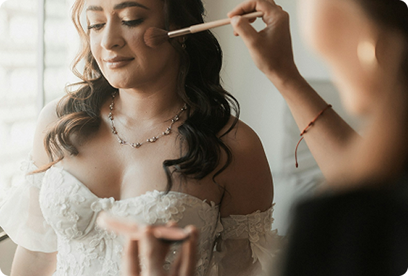 Bridal glam takes about 2.5–3.5 hours, depending on the complexity of the look and prep required.